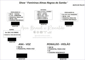 O duo Ana Brasil e Ronaldo apresentam o Projeto Femininas Almas Negras do Samba, um show intimista que homenageia mulheres, intérpretes, cantoras e compositoras do gênero. O repertório perpassa gigantes da música popular brasileira, como Clementina de Jesus, Elza Soares, Dona Ivone Lara, Leci Brandão, Jovelina Pérola Negra, Beth Carvalho e Alcione.